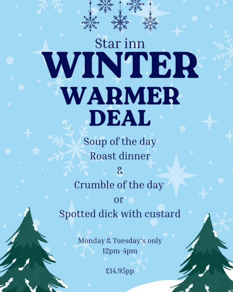 Get into the festive spirit and join us for our Festive Fayre Menu, available from 24th November to 22nd December. Gather your friends, family, or colleagues and celebrate the season with us at The Star Inn!